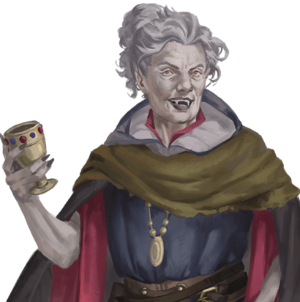 Sangora is a centuries-old vampire with sunken eyes and a shock of long, white hair. She is inquisitive and happy to gossip.