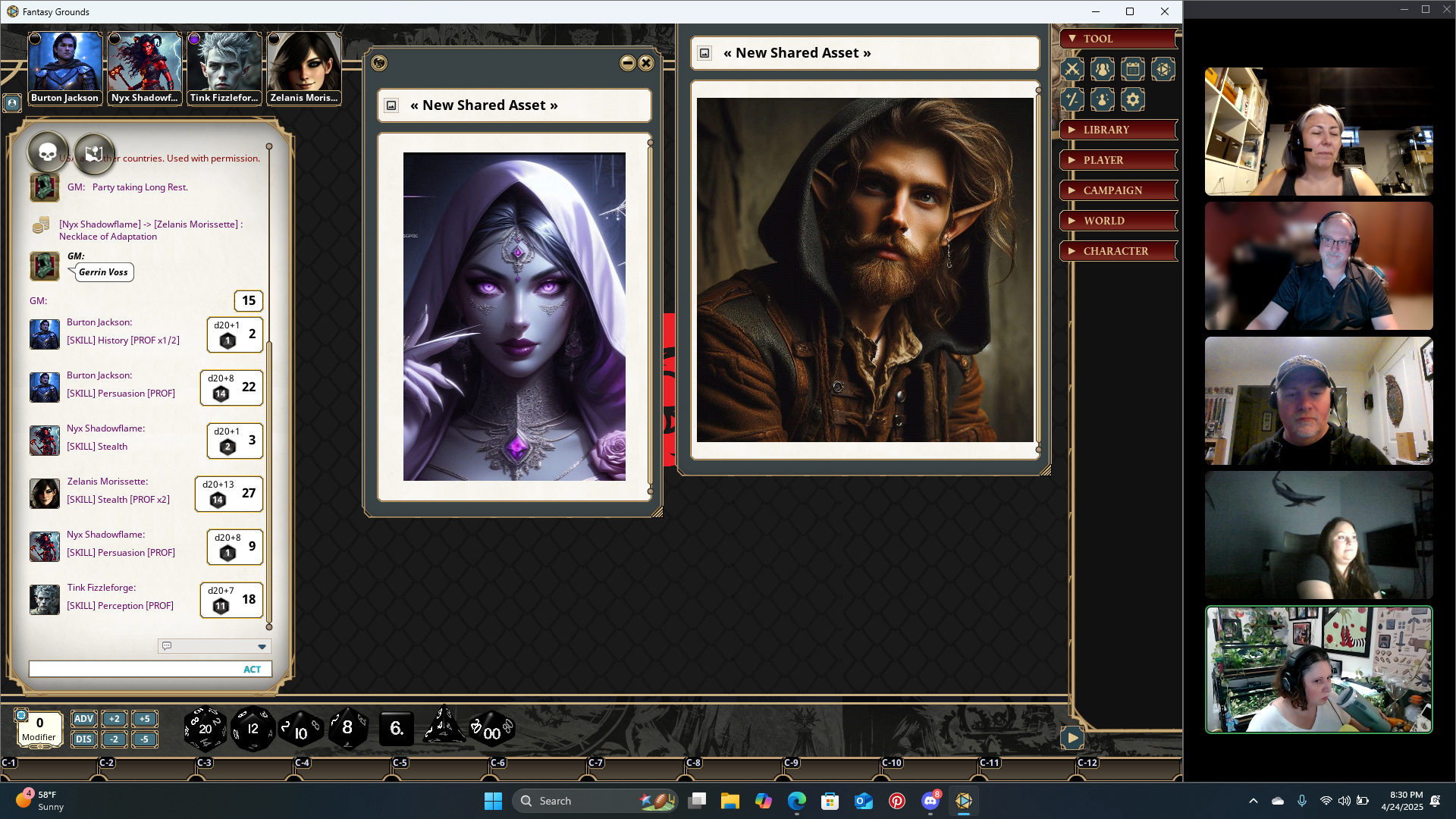 Zelanis knows that the head of the thieves guild is in the Chasm District and takes the party there to see if they can get some more information. The head of the local thieves guild is Varka, a half drow. She and Zelanis know each other well. Varka provides the party with the location of Gerrin Voss for a small finders fee. Burton catches Varka's interest and she tells him to come around when he's not so busy.