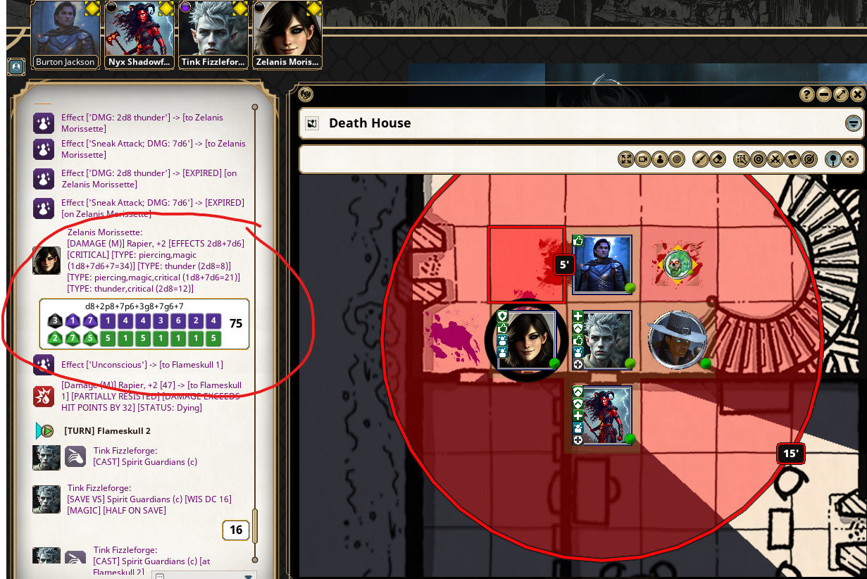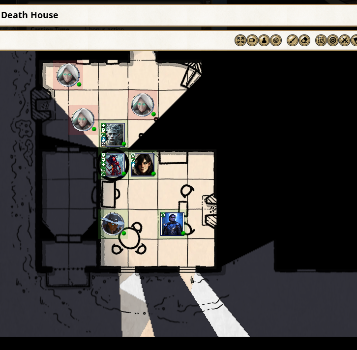 Zelanis scouts the house and find there are only two ways in (the front door and a window on the front of the house). The party goes through the front door, Zelanis hears shuffling behind the second set of doors. The party decides to try the front window. They climb in and find themselves in a empty den. Zelanis again hears shuffling behind the doors. They party prepares for an encounter.