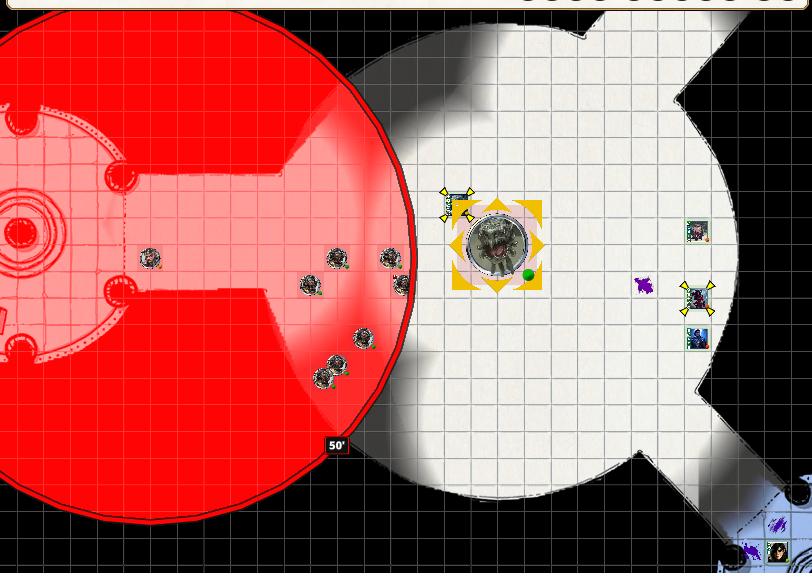 Burton runs to grab the rod piece. The dragon casts Cold Breath at Tink. Tink then casts Banishment on the dragon and it disappears. The party quickly retreats back into the dungeon beneath the vault. They barricade themselves in Valendar's old cell. When the dragon reappears he searches for the party, but can not find them. The party takes a long rest before heading out and finding the portal to take them back to Sigil.